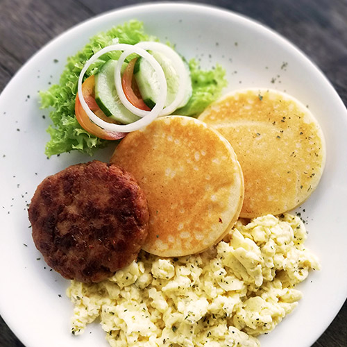 Scrambled Eggs + Chicken Burger Sausage
